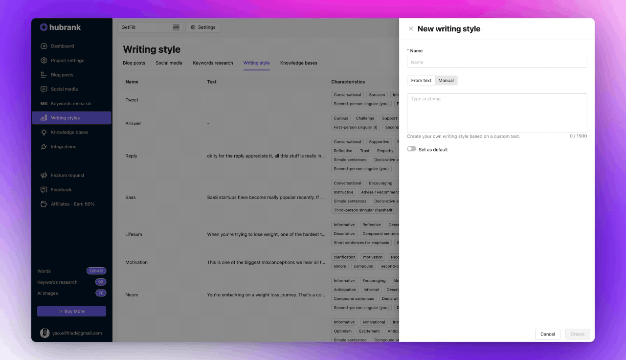Train Propel Studio with your content samples to perfectly match your brand's voice and style.